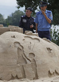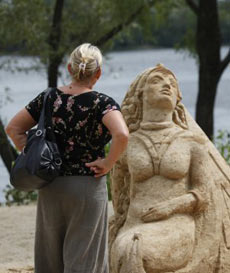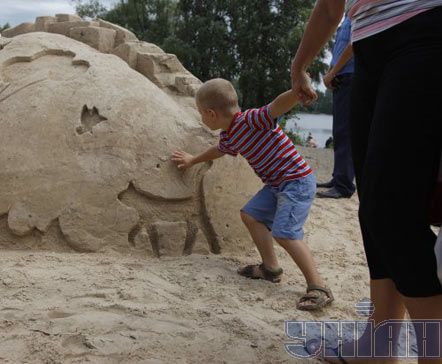 Планується, що скульптури з піску простоять на Оболонській набережній близько тижня.