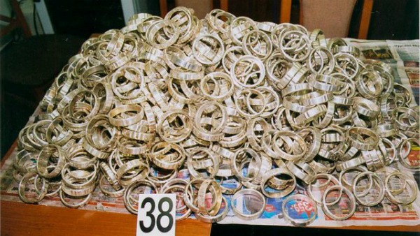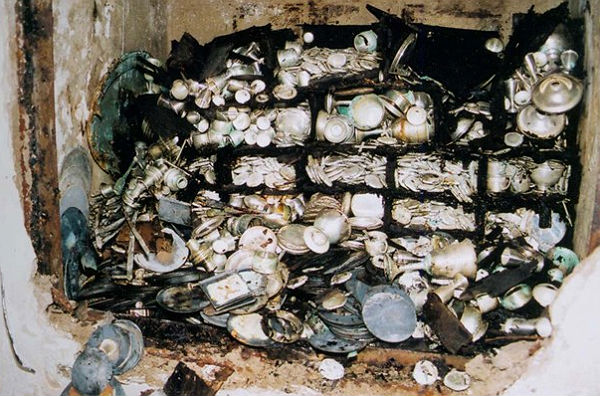 Серед предметів скарбу, вага якого склала 493 кг — монети, посуд, кубки та свічники, браслети, флакони для парфумів, тощо. Всі вони належать до періоду початку 20 століття.