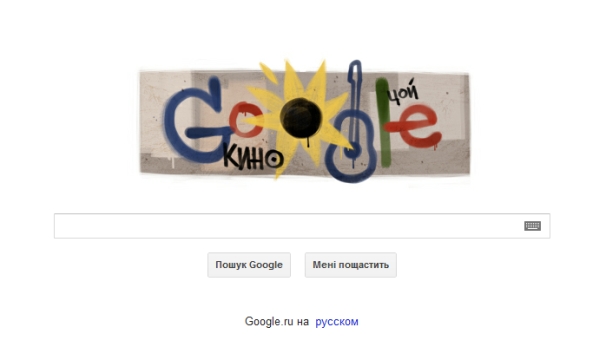 Користувачі ж російського Google, побачили сьогодні Doodle, присвячений Віктору Цою, якому б 21 червня виповнилося 50 років.