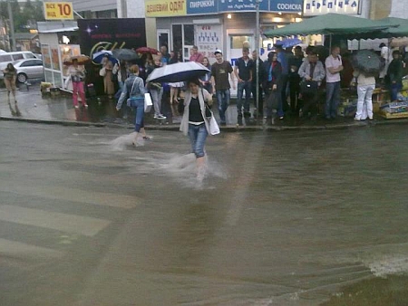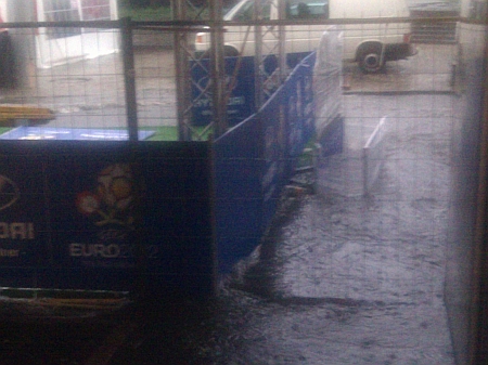Крім того, не витримала потоку води система зливостоків на Майдані Незалежності біля фан-зони Євро-2012.