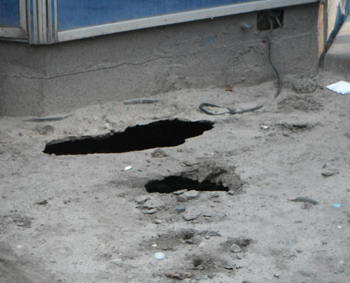 «На зовні масштабів аварійної ситуації не видно, однак з оперативного фотозвіту стає зрозуміло, що незаконно розміщені МАФи стоять на тонкій „шкаралупі“ асфальту, який ще не провалився», — відзначили у водоканалі.