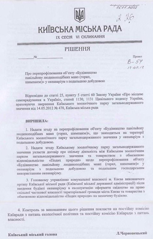 Київська міська рада підтримала проект рішення про перепрофілювання недобудованого павільйону людиноподібних мавп на території Київського зоопарку в океанаріум.