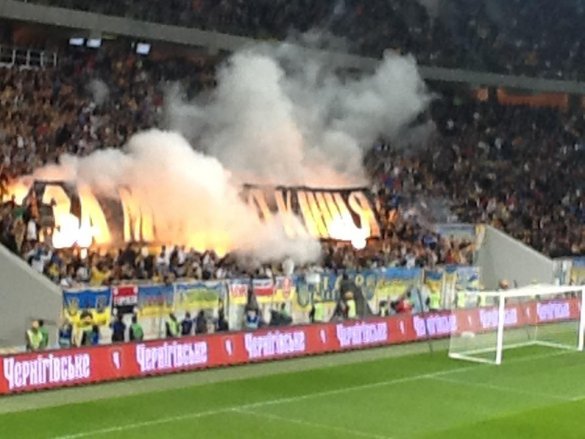 Під час товариського матчу з футболу між збірними України та Чехії на стадіоні «Арена-Львів» уболівальники розгорнули кілька банерів на підтримку української мови.