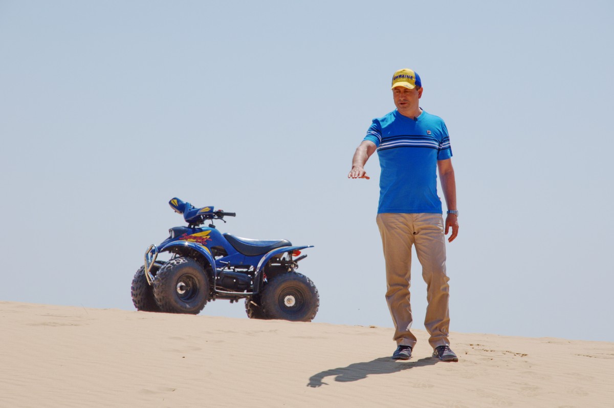 Найбільший піщаний масив у Європі складається із безмежних барханів (тутешні мешканці називають їх «кучугурами»), висотою близько 5 метрів та негустою рослинністю. Влітку пісок тут нагрівається до 70 градусів, але на глибині 300-400 метрів під пустелею існує прісне підземне озеро з дуже смачною водою. Також глядачі дізнаються де і як можна покататися на квадроциклах Олешківськими пісками.
