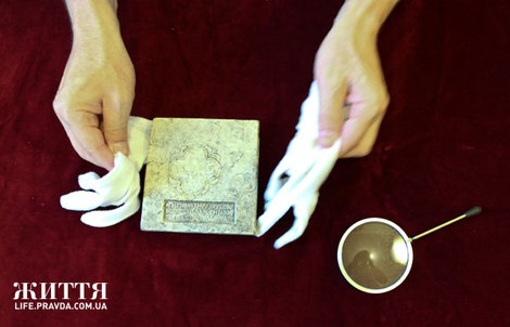 Головний зберігач фондів Національного Києво-Печерського заповідника Григорій Полюшко перед тим, як взяти ікону до рук, вдягає рукавички — він має справу з безцінним предметом.