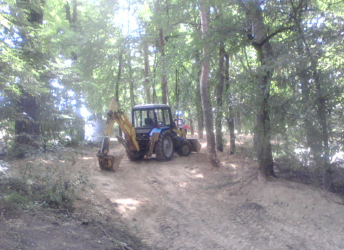 "Прямо поміж соснами, чийсь екскаватор риє канаву. Напоготові лежать якісь бетоні кільці великого діаметру. Дізнатись, що відбувається, нам не вдалося. Тільки ми підійшли із фотокамерою у руках, як якийсь пан наказав охоронцю, якого видно на фото: «Це приватна власність! Не можна знімати! Гони його!», — розповів Євген.