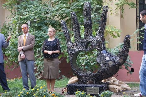 Пам'ятну скульптуру у вигляді двометрової долоні з вирізаним в ній логотипом компанії “Apple” на честь засновника компаніїСтіва Джобса відкрили 5 жовтня в Одесі.