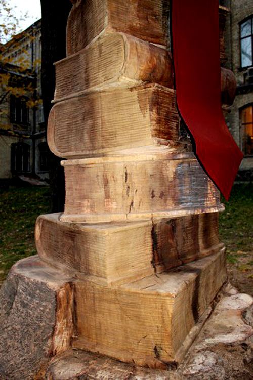 Він вирізав зі стовбура стопку книг, яка символізує пізнання світу і духовне зростання.