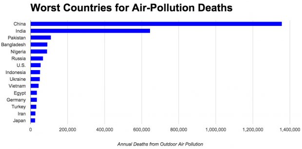 Україна посіла дев'яте місце в антирейтингу країн за смертністю від забруднення повітря. Про це повідомили в прес-службі Національного екологічного центру України з вугільної енергетики.